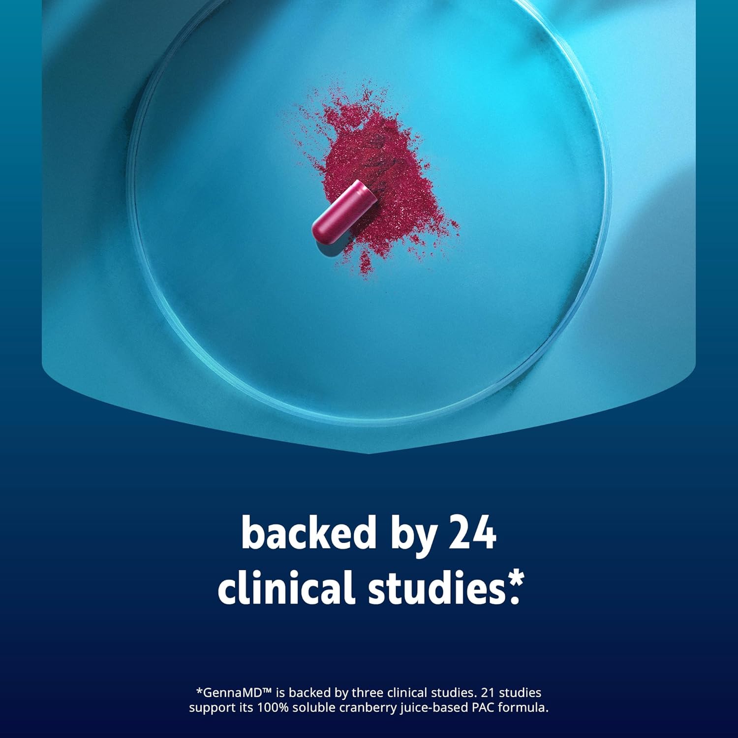 GennaMD™ is a urologist-recommended urinary health supplement with clinically proven 36 mg PAC,sourced only from pure cranberryjuice extract—not skins or stems like most other cranberry supplements. Its 100% soluble, medical-grade PAC delivers maximum bacteria-blocking power and the highest PAC concentration available (30% vs. just 1–18% in others). Backed by 24 clinical studies,*GennaMD is also the smallest cranberry capsule on the market for recurrent UTIs.